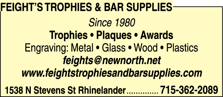 Names and Numbers Verified Engravers Trophies & AwardsFeight's Trophies & Bar Supplies is a local family owned and operated business in Rhinelander, WI, since 1980. Count on us to reach your expectations in designing unmatched trophies! Call us today to find out about the wide variety of items we have in stock.