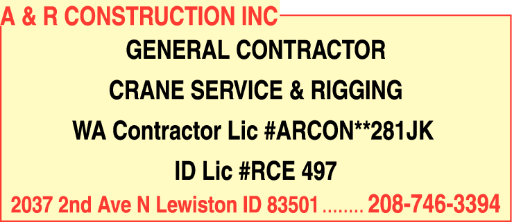 Names and Numbers Verified Metal Buildings Concrete Contractors General Contractors Crane ServiceA&R Construction is a comprehensive construction and crane service company with over 50 years of industry experience, established in 1965 and located in Lewiston, Idaho. Specializing in a diverse range of construction services, the company offers expert solutions including cran…