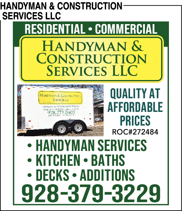 Names and Numbers Verified Home Improvement Services CONTRACTORS - REMODELING & REPAIR Remodeling Services HandymanTrusted Handyman & Construction in Prescott - From small repairs to remodels, we deliver reliable, high-quality work at fair prices. Licensed, insured, and experienced—serving Prescott with care and craftsmanship. ROC 272484.