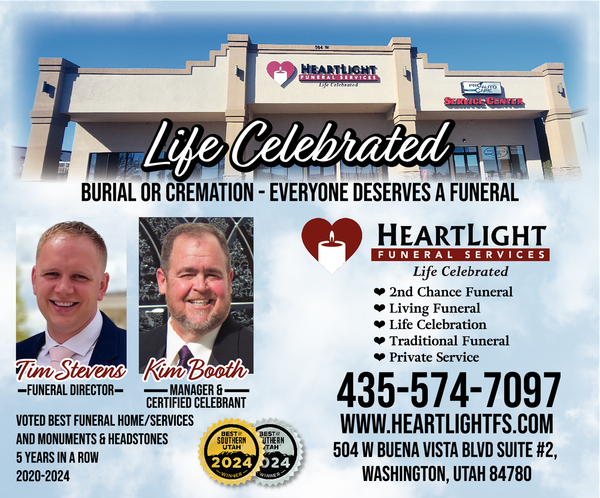 Cremation Services Funeral Directors' Services Funeral Homes Funeral Plans - Pre-ArrangedWe are a warm and welcoming funeral home located in St. George, Utah. At our facility, we offer affordable cremation services and full-service funerals. Our priority is to provide exceptional service above all else, which has earned us the prestigious "Service Above Profits" awa…