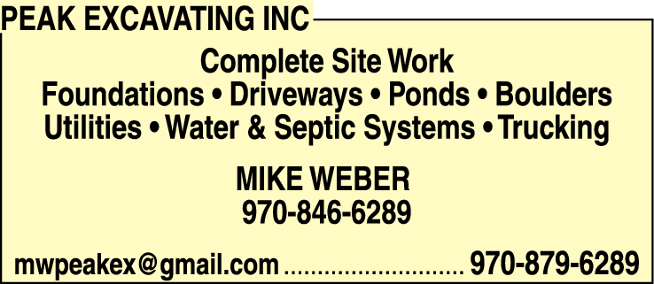 Names and Numbers Verified Excavating Contractors Snow Removal Service Trucking Foundation ContractorsPeak Excavating Inc is a reputable business in the North Routt area specializing in top-notch snow removal services. Led by the experienced and dedicated team, headed by Mike Weber, the company has been providing exceptional snow removal solutions to both residential and commerc…
