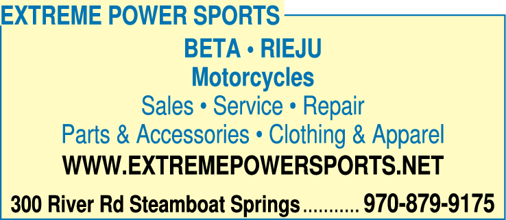 Names and Numbers Verified All-Terrain Vehicles (ATVs) Boat Repair & Maintenance Motorcycles Dealers Motorcycles - Parts & AccessoriesAt Extreme Power Sports in Steamboat Springs, Colorado, you'll find ATVs, snowmobiles, dirt bikes, scooters and other powersports gear from industry leaders like Arctic Cat, Beta, Genuine and other trusted brands. If apparel is what you are looking for, we carry top brands like …