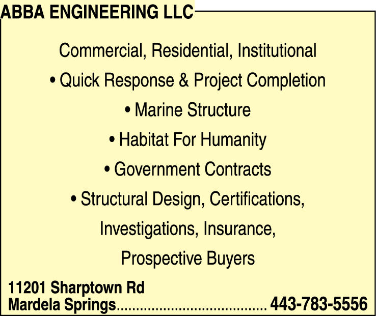 Names and Numbers Verified Engineers Consulting Structural Engineers EngineersABBA ENGINEERING LLC is a reputable business located at 11201 Sharptown Rd in Mardela Springs. We specialize in providing a wide range of services in the fields of commercial, residential, and institutional engineering. With our team of highly skilled engineers and technicians, …