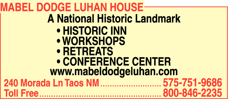 Names and Numbers Verified Bed & Breakfast Conference Centers & FacilitiesMabel Dodge Luhan House is a renowned National Historic Landmark located at 240 Morada Ln in Taos, New Mexico. Serving as an emblem of the region's rich cultural and artistic heritage, the Mabel Dodge Luhan House offers a unique blend of history, charm, and modern amenities. …
