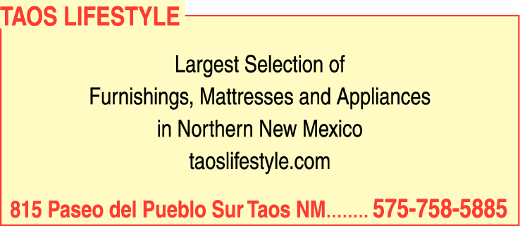 Names and Numbers Verified Furniture Dealers Mattresses - Retail Appliances - Household - Major - DealersTAOS LIFESTYLE is a renowned business in Northern New Mexico, having been voted the Best Place To Buy A Mattress for 18 consecutive years. With the largest selection of mattresses and bedding in the region, TAOS LIFESTYLE is a trusted destination for customers looking for the pe…