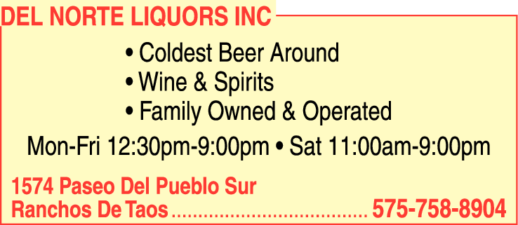 Names and Numbers Verified Liquor Stores Wines - RetailDEL NORTE LIQUORS INC is a family-owned business located at 1574 Paseo Del Pueblo Sur in Ranchos De Taos. We pride ourselves on offering the coldest beer around, as well as a wide selection of wines and spirits. Our store is open Monday through Friday from 12:30pm to 9:00pm,…