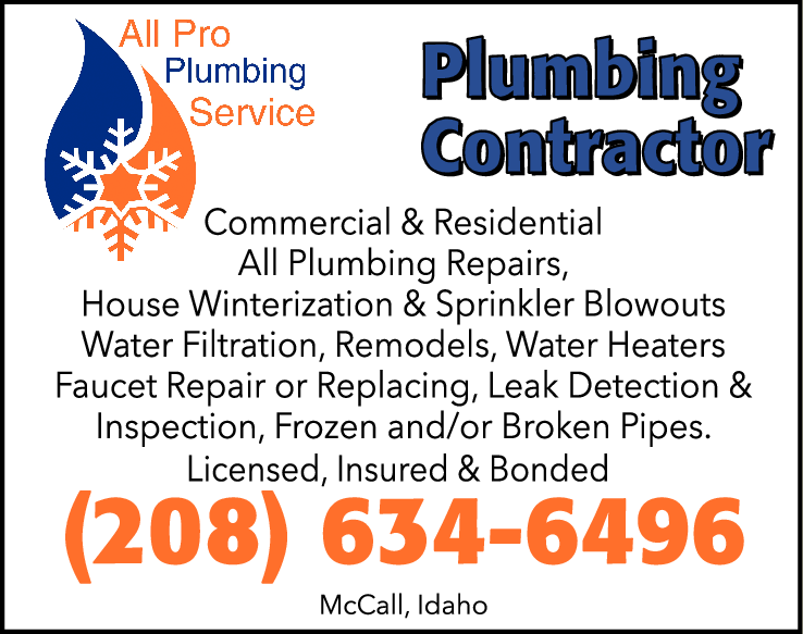 Names and Numbers Verified Plumbing Contractors Plumbers Plumbing - Drains & Sewer Cleaning Water Heaters - Service & RepairAll Pro Plumbing is a reputable plumbing service contractor dedicated to providing high-quality plumbing solutions for both commercial and residential clients. Located in McCall, Idaho, we specialize in a wide range of plumbing services including all plumbing repairs, house wint…