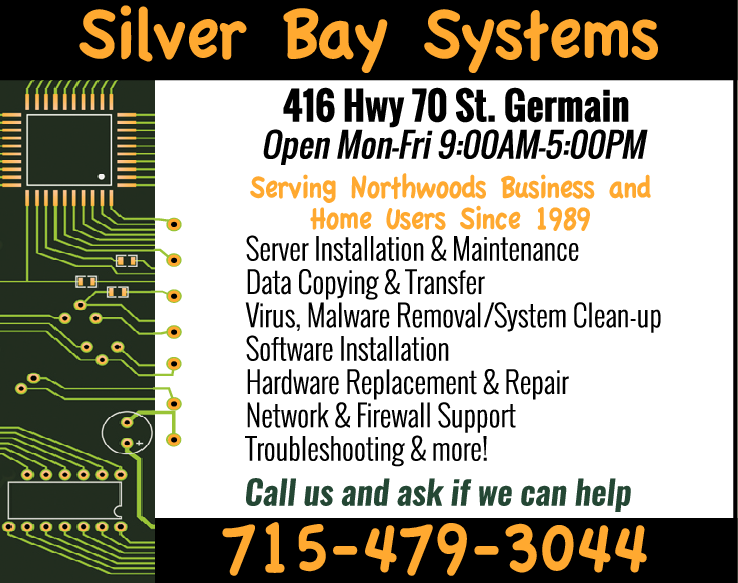 Names and Numbers Verified Computers & Computer Equipment - Repair & Service Computers - NetworkingSilver Bay Systems is a trusted and reliable technology service provider located at 416 Hwy 70 St. Germain. We have been proudly serving Northwoods business and home users since 1989. Our team of skilled professionals specializes in a range of services for your technological nee…