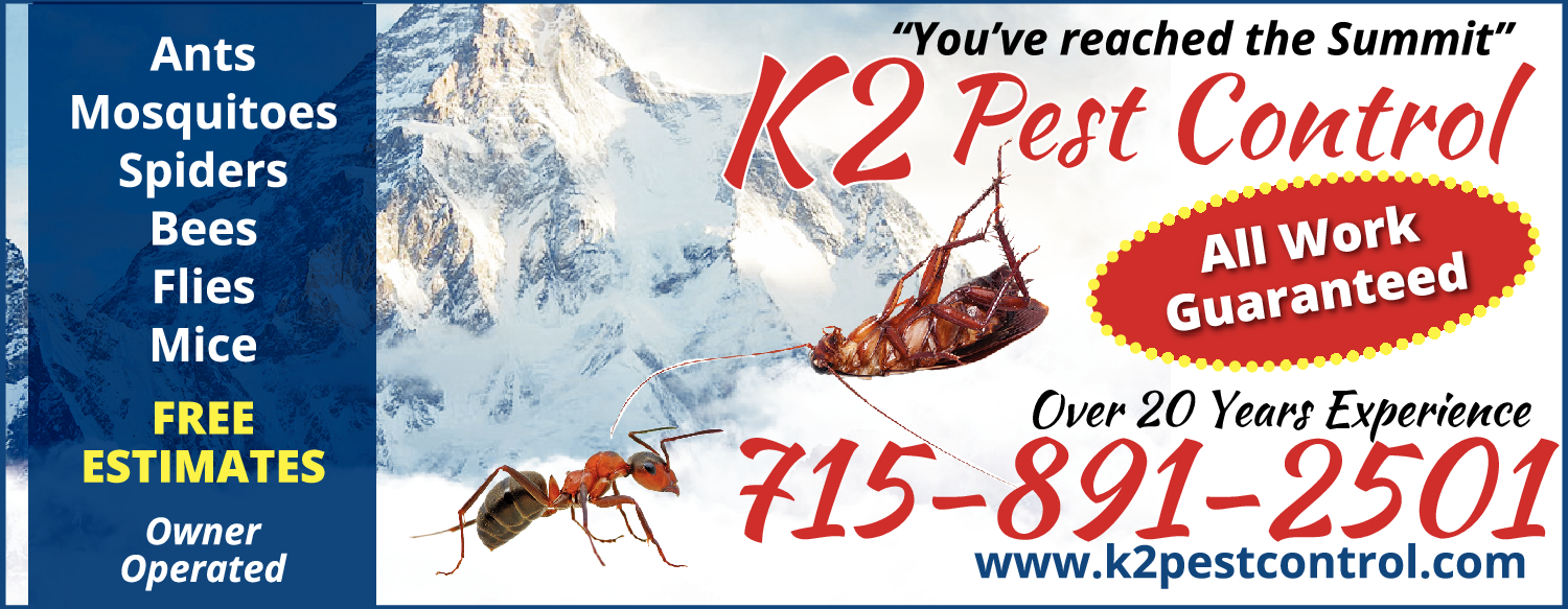 Names and Numbers Verified Pest Control ServicesK2 Pest Control strives to provide the most comprehensive, effective and up-to-date pest control treatments to protect you and your valued north woods property. Owner operated. Licensed and Insured in Wisconsin. You can be assured of professional, personal service with…