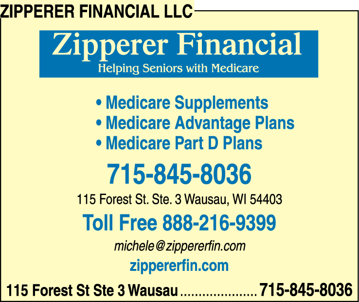 Names and Numbers Verified Insurance AgencyZipperer Financial is a trusted and reliable financial consulting firm located in Wausau, WI. With a focus on helping seniors navigate their way through the complex world of Medicare, we specialize in providing guidance and assistance with Medicare Supplements, Medicare Advantag…