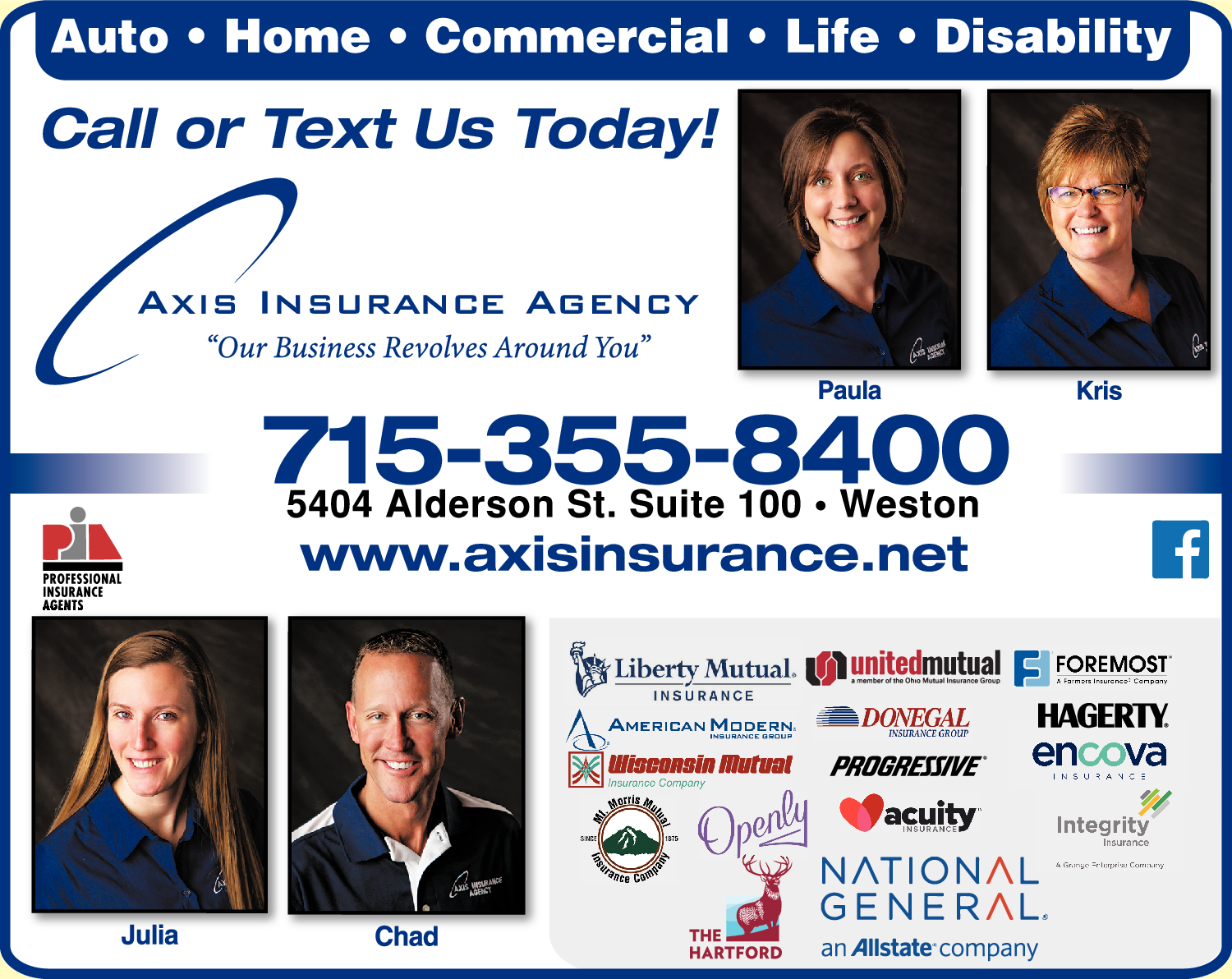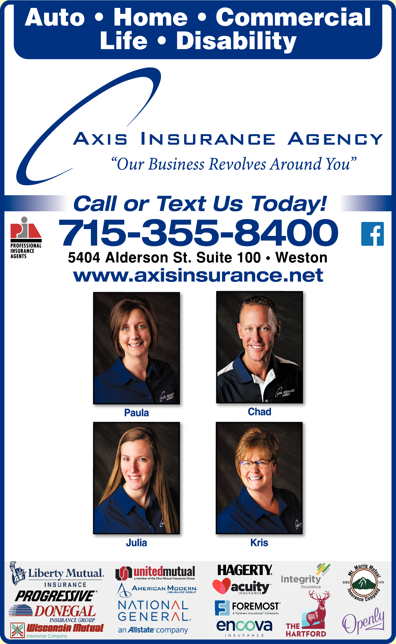 Names and Numbers Verified Insurance Agency Automobile Insurance Life Insurance Insurance - HomeownersAxis Insurance Agency is a professional insurance agency located at 5404 Alderson St., Suite 100 in Weston, Wisconsin. With a focus on providing exceptional customer service, our business revolves around our clients' needs and ensuring they receive the right insurance coverage …