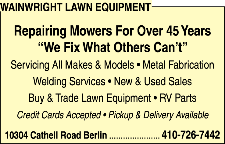 Names and Numbers Verified Lawn Mowers Lawn Mowers - Sharpening & Repairing Metal Fabricators WelderWAINWRIGHT LAWN EQUIPMENT is a trusted and established business that specializes in repairing mowers for over 45 years. With the motto "We Fix What Others Can't", we take pride in providing exceptional services for all makes and models of lawn equipment. Our team of experienced …
