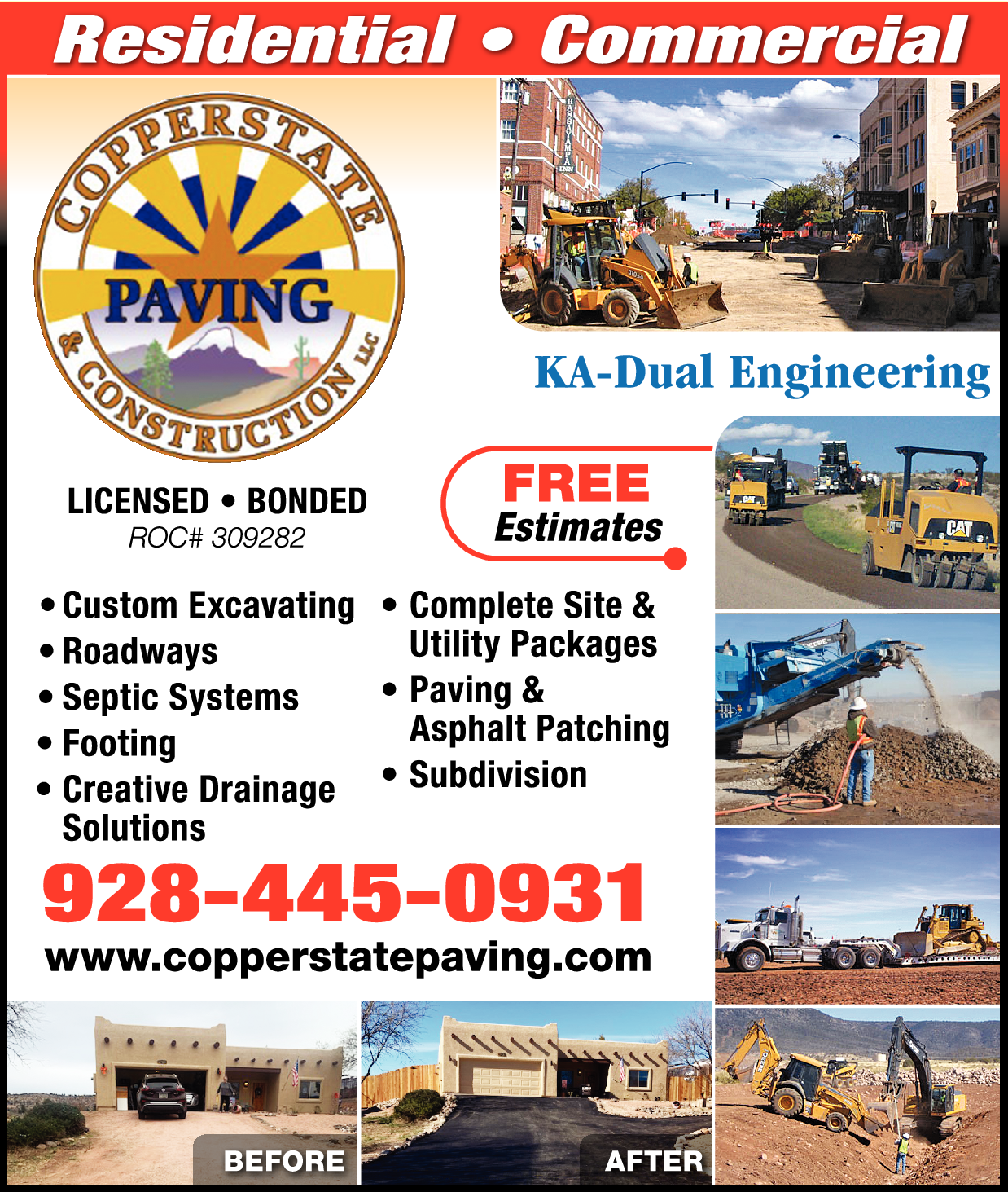 Names and Numbers Verified Driveway Contractors Excavating Contractors Home Improvement Services Paving ContractorsAt CopperState we specialize in Paving but also have 20 years of experience in the construction industry. Our goal is to provide the best quality service in the most cost effective manner but will never sacrifice our integrity. We pride ourselves on the quality of work and our e…