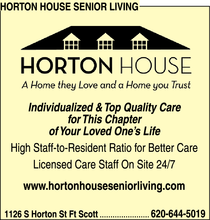 Names and Numbers Verified Adult Homes ALZHEIMER'S CARE & SERVICES MEMORY CARE SERVICES & FACILITIES Assisted Living FacilitiesHorton House Senior Living from Ft Scott, KS. Company specialized in: Adult Homes. Call us for more - (620) 644-5019
