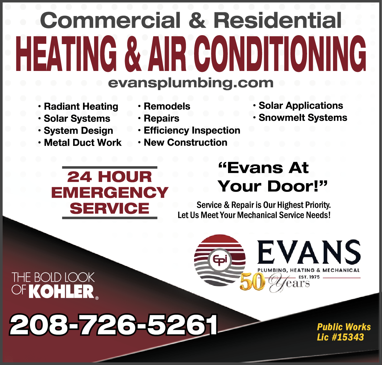 Names and Numbers Verified Air Conditioning Contractors Fire Sprinklers Heating Contractors PlumbersEvans Plumbing has been the Valley's friendly and reliable plumbing and heating & cooling company since 1975. We are on-call 24 hours a day to address any plumbing or heating issue and emergency in a prompt and professional manner. Whether it's installing a whole-building plumbi…