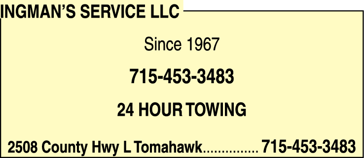 Names and Numbers Verified Feed Dealers Lawn & Garden Equipment & Supplies Lawn Mowers Lawn Mowers - Sharpening & RepairingINGMAN'S SERVICE LLC is a reputable business that has been serving their community as a reliable towing service since 1967. With their exemplary track record and commitment to excellent customer service, they have become the go-to choice for any towing needs in Tomahawk and the …