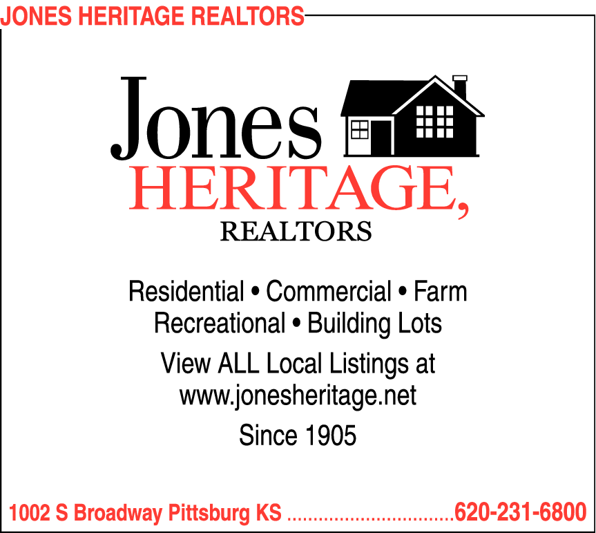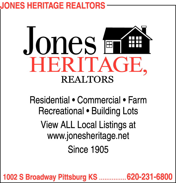 Names and Numbers Verified Real EstateJones Heritage, Realtors agents are highly trained professionals who realize the necessity of keeping themselves informed of all the latest changes in the real estate field of Pittsburg, Kansas and the surrounding areas. Feel free to browse through this site to explore the Crawf…